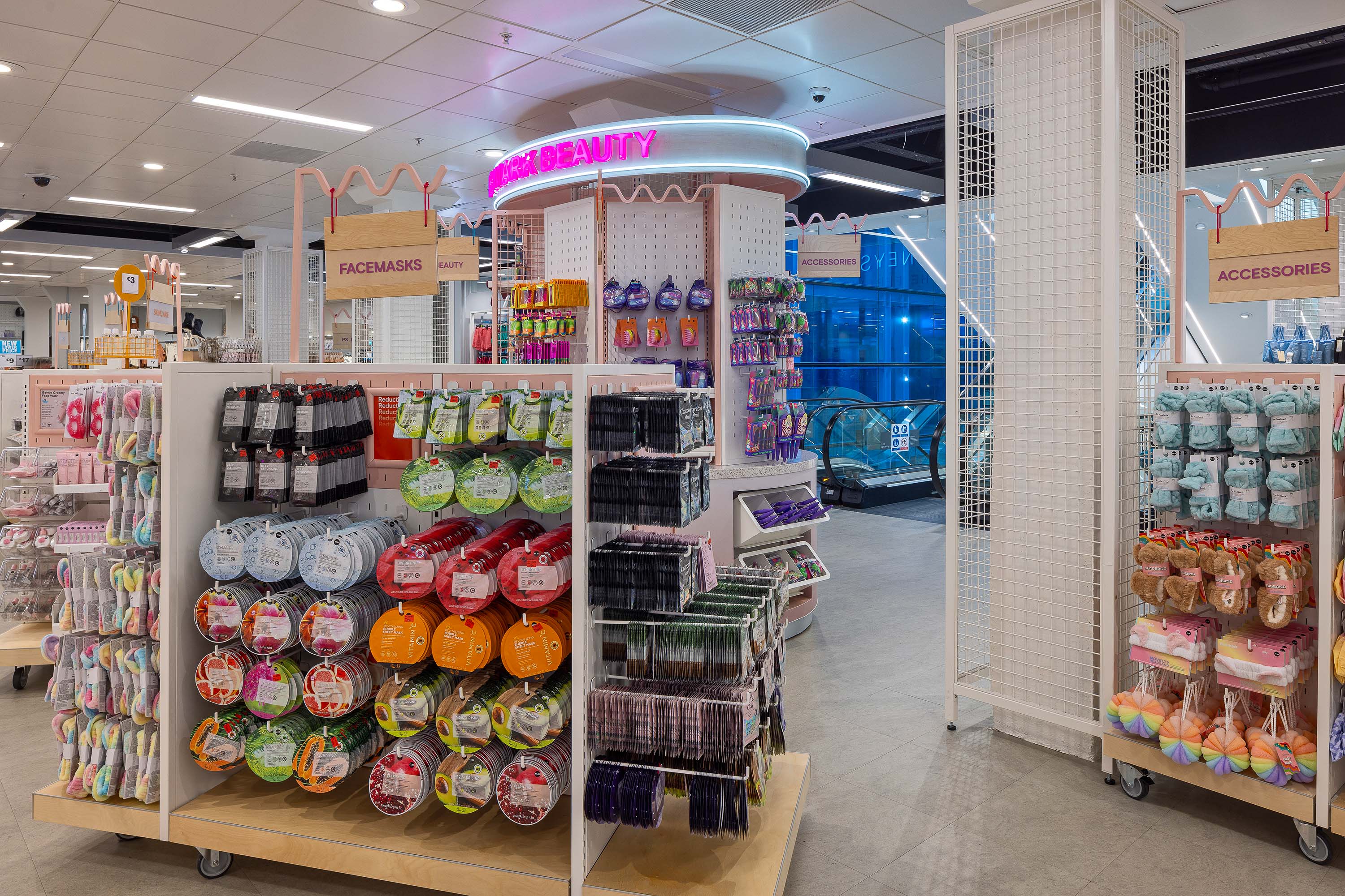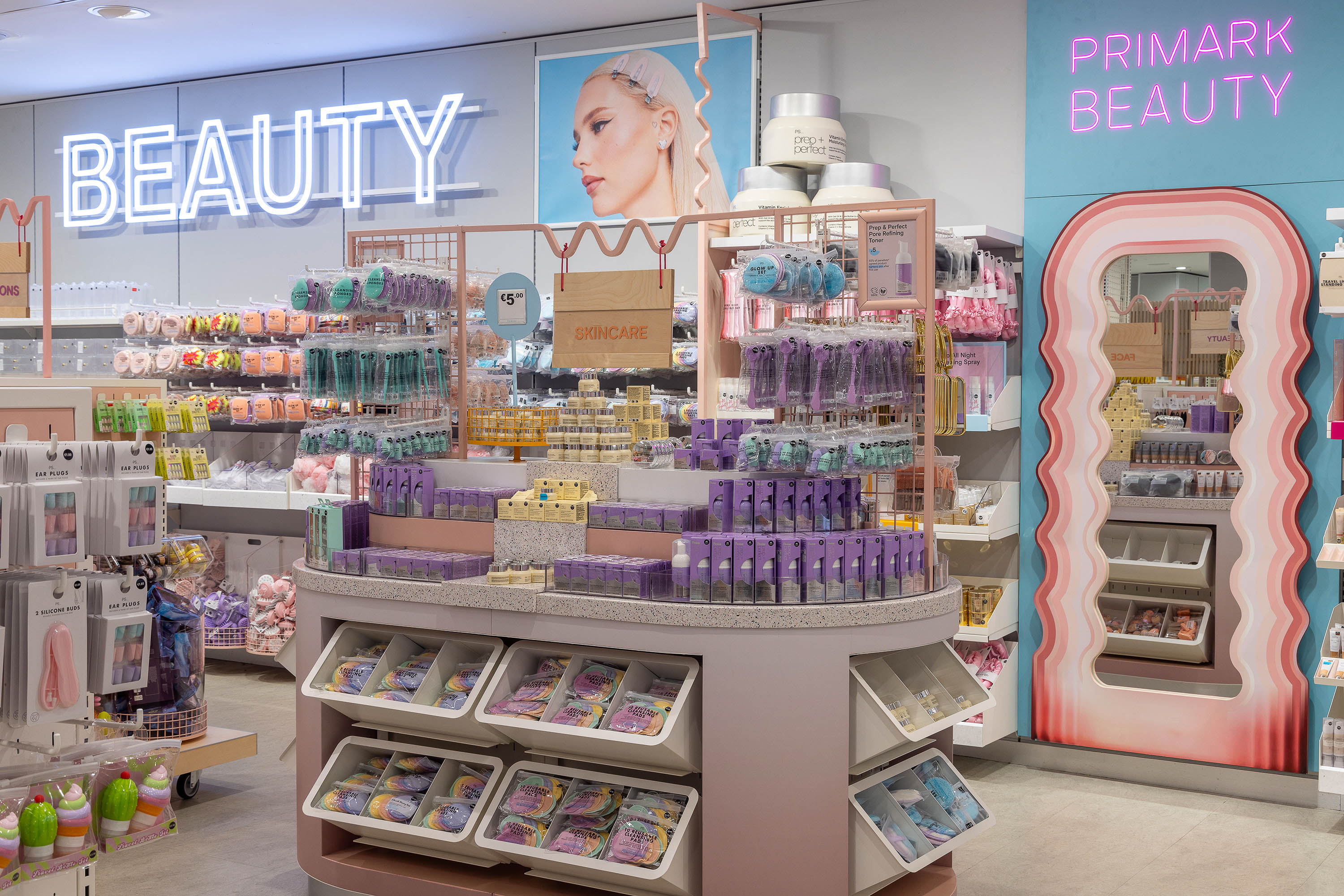 The new concept for the Primark Beauty department is centred around an immersive, story telling-driven experience. It focuses on engaging customers through narrative-driven displays, category signage and personalised product discovery. Each product category—such as skincare, makeup, haircare, and fragrances—has a unique story behind it, connecting the items to a journey or adventure.